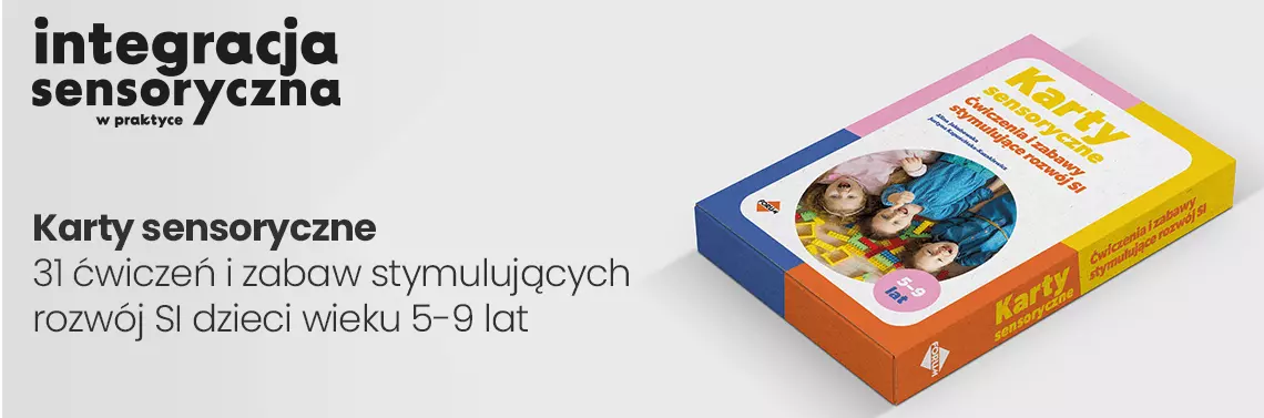 Karty stworzone są z myślą o terapeutach SI, aby wspomóc proces terapii zaburzeń sensorycznych dzieci w wieku 5-9 lat. Autorki Alina Jakubowska oraz Justyna Kapuścińska-Kozakiewicz opracowały aż 31 ćwiczeń i zabaw, które z łatwością można włączyć do swojej pracy z najmłodszym pacjentem w gabinecie terapeutycznym. Pierwsza z autorek na co dzień jest nauczycielem z kilkudziesięcioletnim stażem pracy w przedszkolu i szkole na różnych etapach edukacyjnych, ekspertem MEN ds. Awansu Zawodowego Nauczycieli oraz pomocą uczniów o zróżnicowanych potrzebach edukacyjnych i wychowawczych na I etapie kształcenia. Natomiast druga z autorek jest nauczycielką, pedagożką oraz właścicielką gabinetu terapeutycznego Zmysłek Centrum Rozwoju i Wsparcia Dziecka, w którym prowadzi diagnozę i terapię integracji sensorycznej.